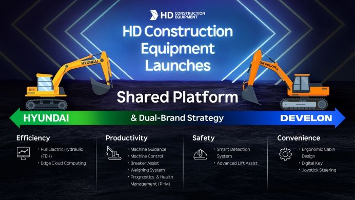 La reorganización mantiene un sistema de doble marca, HYUNDAI y DEVELON bajo una plataforma